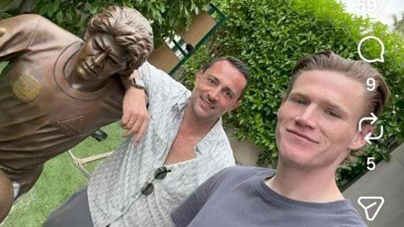 4月21日,那不勒斯球员麦克托米奈在自家花园与一尊马拉多纳雕像的合影引发了球迷热议。